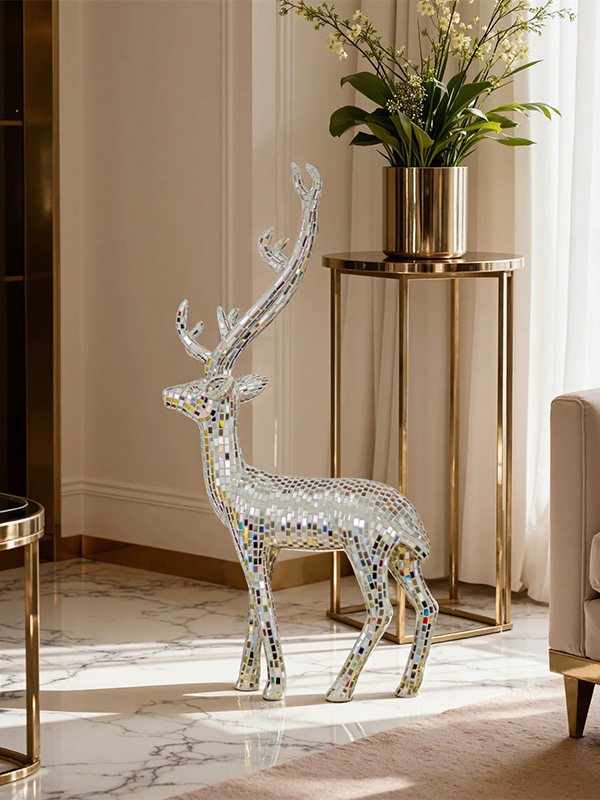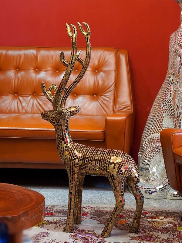 L'utilisation de matériaux de haute qualité, d'un savoir-faire exquis et d'une technologie délicate de collage de mosaïque présente une image réaliste d'un cerf. Le corps principal du Sculpture de cerf est fabriqué en matériaux composites, combinant une structure métallique légère avec des matériaux hautement résistants aux intempéries. Grâce à l'utilisation intelligente de la technologie de collage de mosaïques, chaque partie du corps de cerf est composée de petits morceaux de carreaux de mosaïque colorés pour former de magnifiques motifs et textures. Le produit peut être personnalisé en fonction des besoins du client, notamment en termes de taille, de couleur et de choix de matériaux.